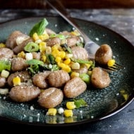 Pan Toasted Brown Butter Gnocchi with Sweet Corn + Grilled Scallions.
