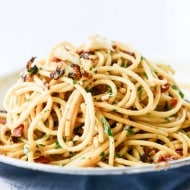 30 Minute Tomato Cream Pasta with Grilled Cheese Crumbs.