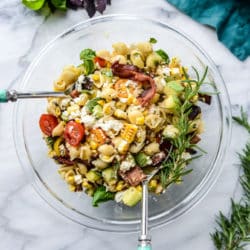 Crispy Bacon Pasta Salad with Fresh Herbs.