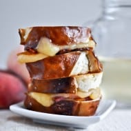 Peach, Bacon + Gouda Grilled Cheese Sliders on Pretzel Bread.
