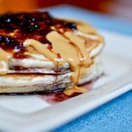 Whole Wheat Chocolate Peanut Butter Pancakes.