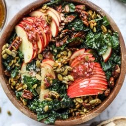 Smoky Butternut Kale Salad with Goat Cheese and Apricot Vinaigrette.