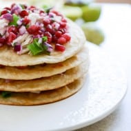 Honey Ginger Chicken Tostadas with Pomegranate Lime Salsa.