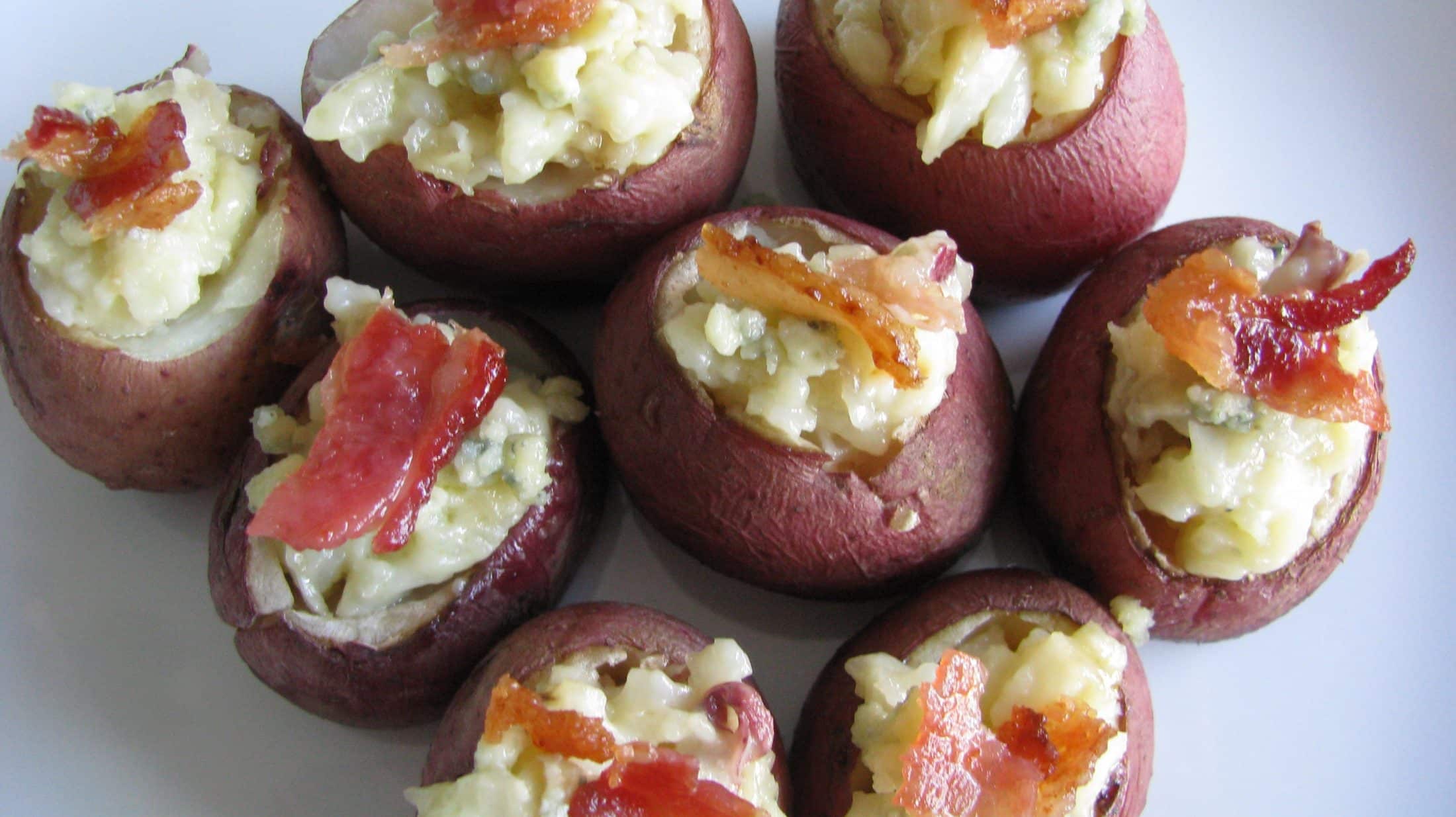 Bacon Gorgonzola Stuffed Baby Red Potatoes.