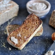Whole Wheat Pumpkin Spice English Muffin Bread with Brown Sugar Cinnamon Butter.