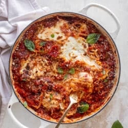 Spinach Artichoke and Chicken Skillet Lasagna.
