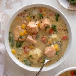Salmon Chowder with Dill Dumplings.