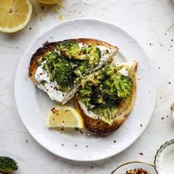 Roasted Broccoli Toast with Red Pepper and Lemon.