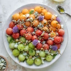 Triple Melon Salad with Blue Cheese and Lemon Vinaigrette.