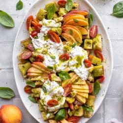 Burrata Basil and Peach Panzanella.