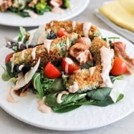 Crunchy Buffalo Chicken Salads with Bacon and Spicy Ranch.