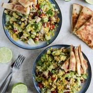 Chopped Chicken Taco Salads with Cheese Quesadilla Strips.