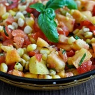 Coffee Crusted Strip Steak with Herbed Corn Salsa.