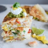 Chipotle Beer Shrimp Quesadillas with Spicy Guac.