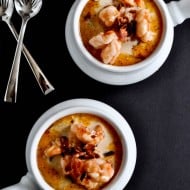 Broiled Shrimp with Tomatoes, Basil and Brie.