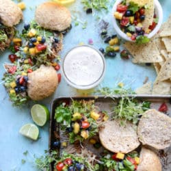 Kalua Pork Sliders with Mango Blueberry Salsa.