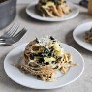 20 Minute Spicy Garlic Spinach Pasta with Chickpeas.