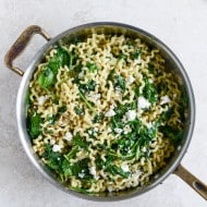 Caramelized Shallot, Spinach and Goat Cheese Garlic Butter Pasta.
