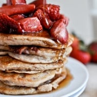 Roasted Strawberry Brown Butter Pancakes.
