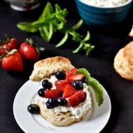 Boozy Red, White + Blueberry Shortcake Sliders with Mascarpone Whipped Cream.