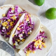Crockpot Smoky Brisket Tacos with Shredded Cabbage + Sweet Corn.
