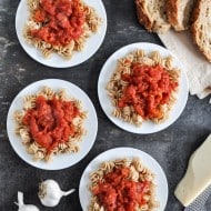 30 Minute Tomato Cream Pasta with Grilled Cheese Crumbs.