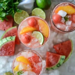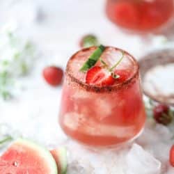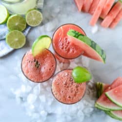 Layered Watermelon Coconut Shakes with Salty Lime Sugar.