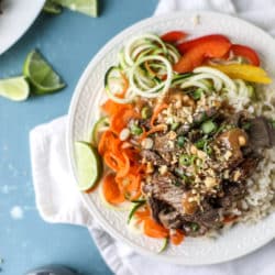 Zucchini Noodles with Cherry Tomato Garlic Cream Sauce and Breadcrumbs.