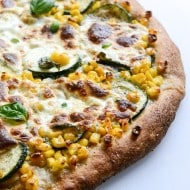 Sweet Corn, Zucchini and Fresh Mozzarella Pizza.